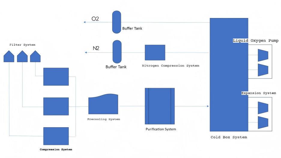 The project involves the construction of a nitrogen generation plant with a capacity of 12,000 Nm³/h. It includes a complete process system covering air filtration, compression, purification, distillation, nitrogen and oxygen compression, instrument and electrical control systems, cooling water systems, and storage tanks. The integrated and technologically advanced setup is designed to meet the diverse gas supply needs of the industrial zone.